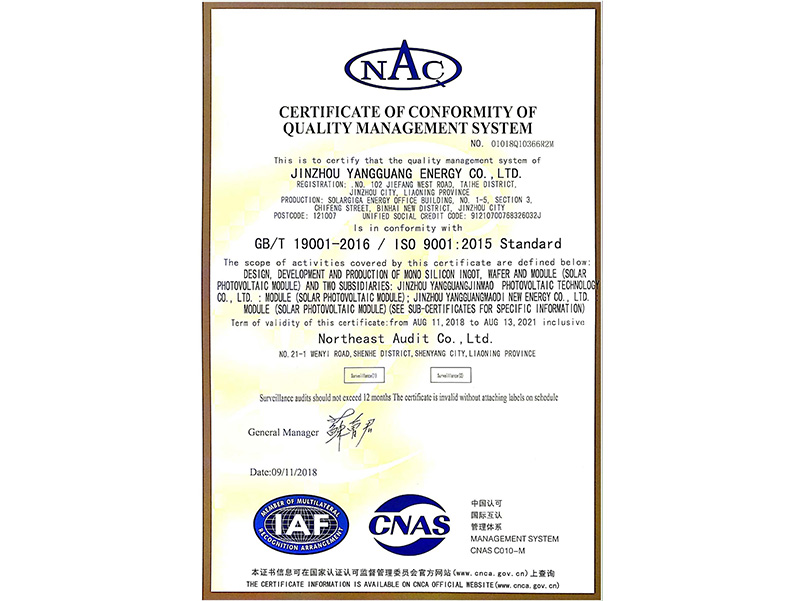 品質管理体系認証証明書(中国語)