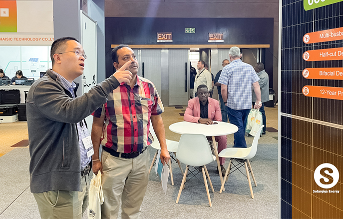 作为全球知名光伏组件制造商,阳光能源在本次大会上向来自全球的业界翘楚展示了我司的先进技术和创新产品。阳光能源3款Giga-P系列组件面向当地大型地面电站等应用场景,量产功率最高可达670W;此外,阳光能源还展示了1款 Giga-N系列78片双玻组件产品,以更高效、更前沿的组件特性,俘获大批观众驻足欣赏。展会现场,阳光能源还与当地伙伴共同探讨了南非光伏产业发展新机遇。