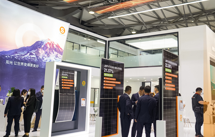 本届上海光伏展会,阳光能源展出了3款GIGA-N系列组件和4款GIGA-P系列组件,产品采用5-10倍IEC标准,最高可提供30年发电效率保证,此外还展示了BIPV组件、轻质组件和瓦片组件等,为客户提供更定制化的选择与解决方案。