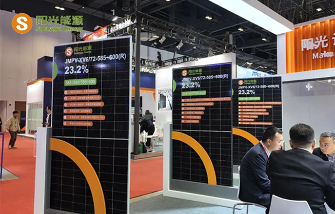 值得一提的是,阳光能源此次带来的新品防眩光组件是该款产品的首次公开亮相。在深入调研市场需求时,阳光能源发现传统光伏组件在强光下易产生眩光,影响视觉效果和周边环境。基于此,研发团队为这款组件的玻璃表面采用特殊纹理设计,能够有效分散反射光,实现防眩光效果。这一创新设计使其更贴合机场、高速公路等对防眩光有严格需求的场景。在城市分布式光伏项目中,防眩光组件可以减少对周边居民和行人的影响,为光伏产业在城市中的推广应用提供了更优选择。