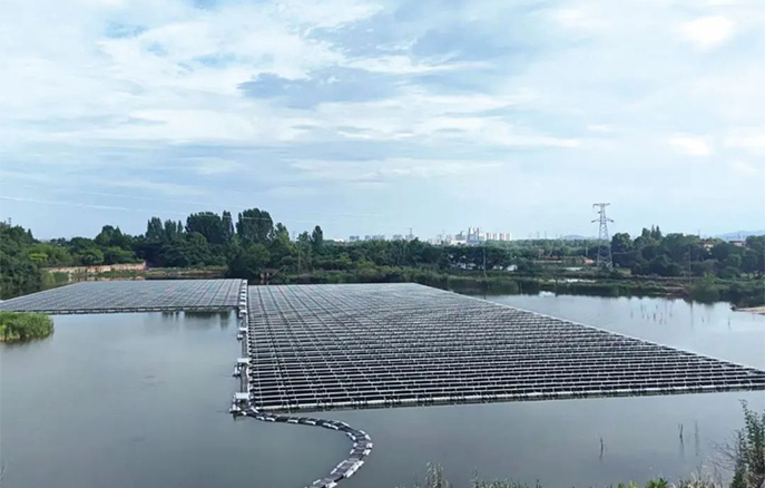 在安徽省芜湖市的白马山海螺水泥厂区内,有一片独特的 “蓝色海洋” 正在悄然释放着巨大能量。白马山海螺水泥 3.8MW 分布式光伏发电项目自全容量并网发电以来,已稳健运行 2 年有余。其中,铺设于厂区水塘上的 1.46MW 水面光伏电站在阳光的辐射下迸发出最纯净的“克莱因蓝”,成为厂区内一道亮丽的风景线。