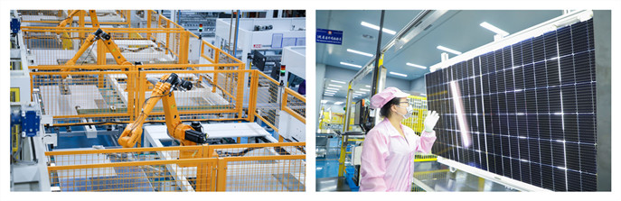 阳光能源悦阳生产基地坐落于盐城建湖,占地面积约100余亩(仍在扩建中),先进产能突破90%,产品基本覆盖市场主流需求,兼容M10/G12等多种尺寸规格,N型 TOPCon和HJT技术已可规模化量产于组件产品中。