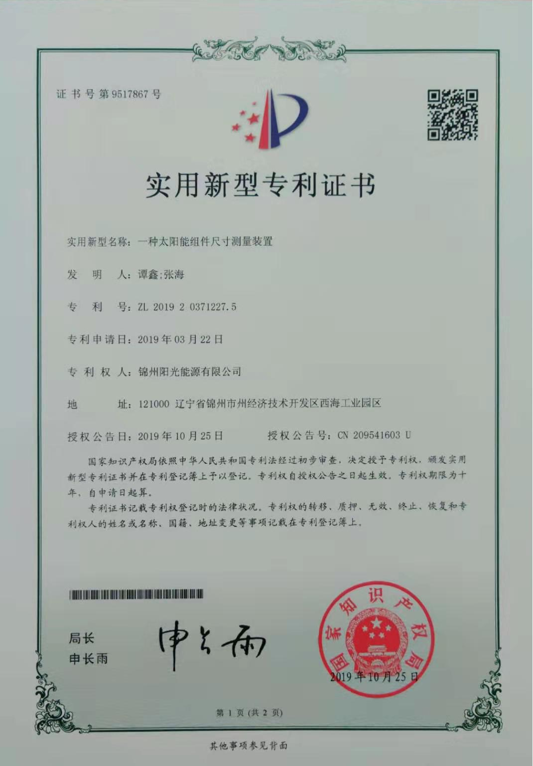 一种太阳能组件尺寸测量装置