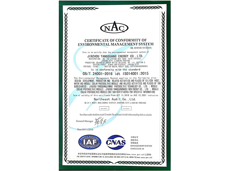 环境管理体系认证证书(英文)
