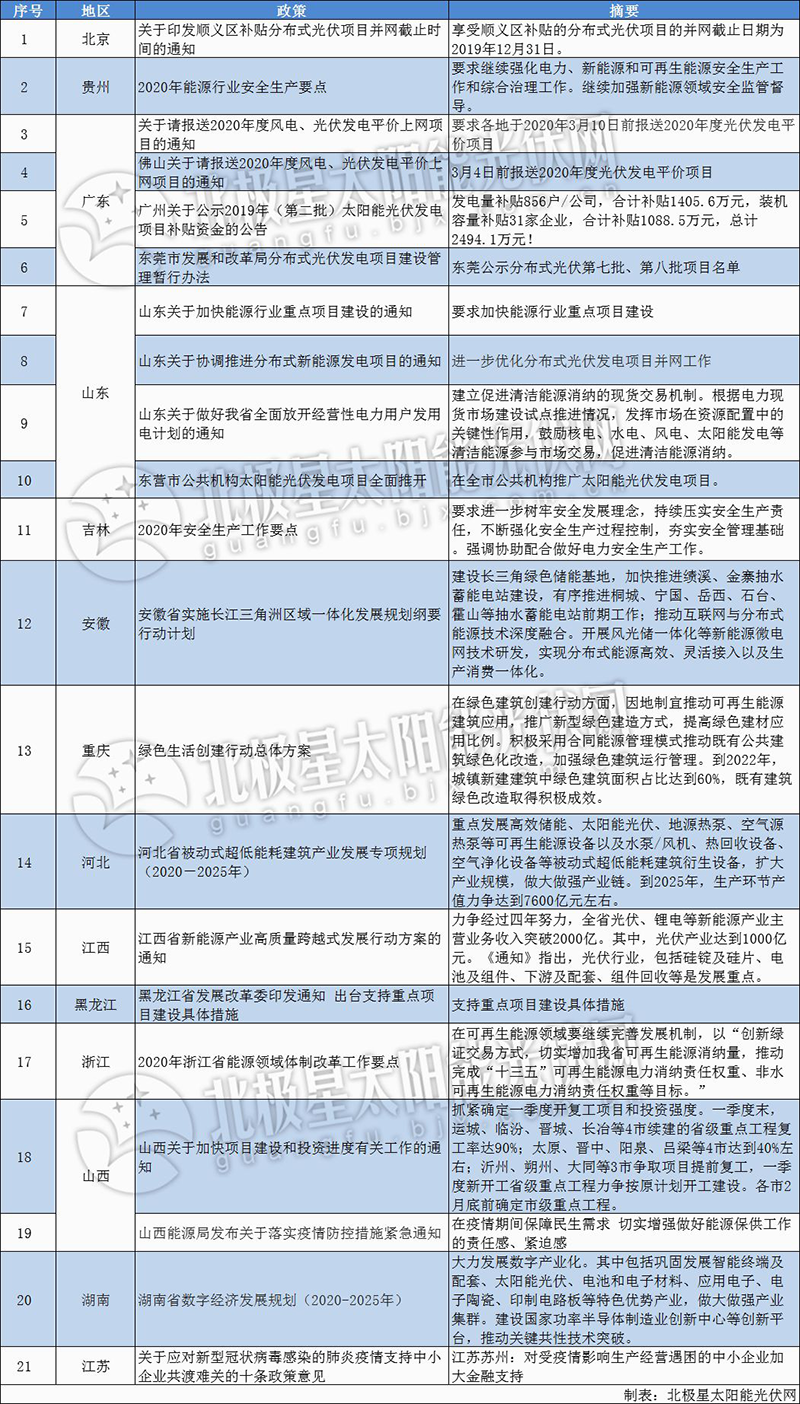 除了平價專案,各地方政府也積極推進2020年分佈式光伏發展。
